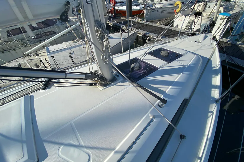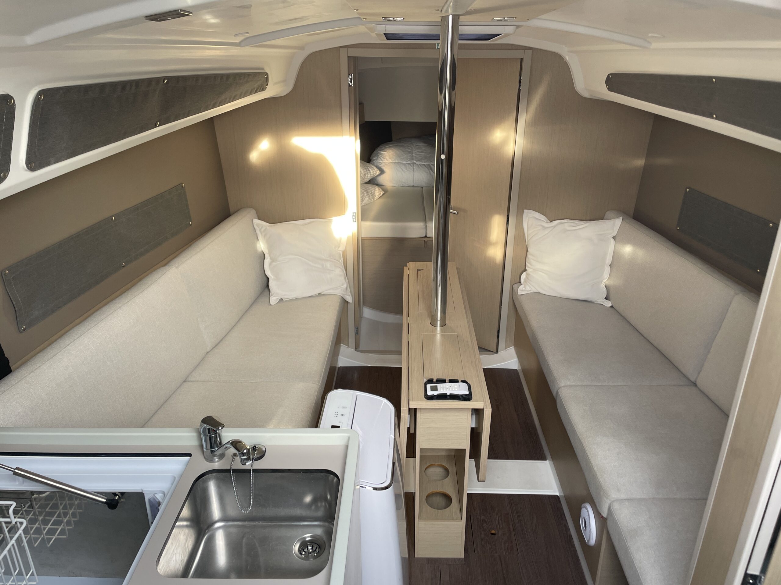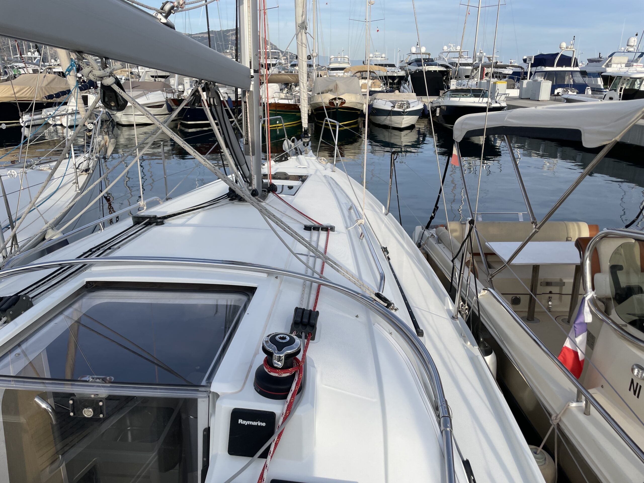 Description générale À vendre Beneteau Oceanis 30.1, voilier moderne et performant, reconnu pour son excellent compromis entre confort, sécurité et facilité de navigation. Conçu par Finot-Conq pour l’architecture navale et Nauta Design pour les aménagements intérieurs, l’Oceanis 30.1 est idéal aussi bien pour la croisière côtière que pour les sorties à la journée ou les week-ends prolongés. Son carène large et stable offre un comportement marin rassurant, tout en garantissant de très bonnes performances sous voile. Caractéristiques principales Constructeur : Bénéteau Modèle : Oceanis 30.1 Architecte naval : Finot-Conq Designer intérieur : Nauta Design Longueur hors-tout : 9,53 m Largeur : 2,99 m Tirant d’eau : env. 1,88 m (version standard) Déplacement : env. 3 995 kg Motorisation : Yanmar diesel 15 CV Carburant : env. 40 L Eau douce : env. 160 L Catégorie CE : B (au large) Aménagements intérieurs L’Oceanis 30.1 propose un intérieur lumineux et fonctionnel, avec de belles finitions : Cabine avant double spacieuse Carré confortable avec table et banquettes Cuisine en L équipée (réchaud, évier, rangements) Salle d’eau avec WC marin et douche Nombreux rangements optimisés pour la croisière Équipements et points forts Cockpit ergonomique et sécurisant Double barre à roue pour une excellente visibilité Gréement performant et facile à manœuvrer Plan de pont dégagé Voilier économique en entretien Idéal pour couple ou petite famille État général Bateau bien entretenu, prêt à naviguer. Historique d’entretien suivi. Visible sur rendez-vous.